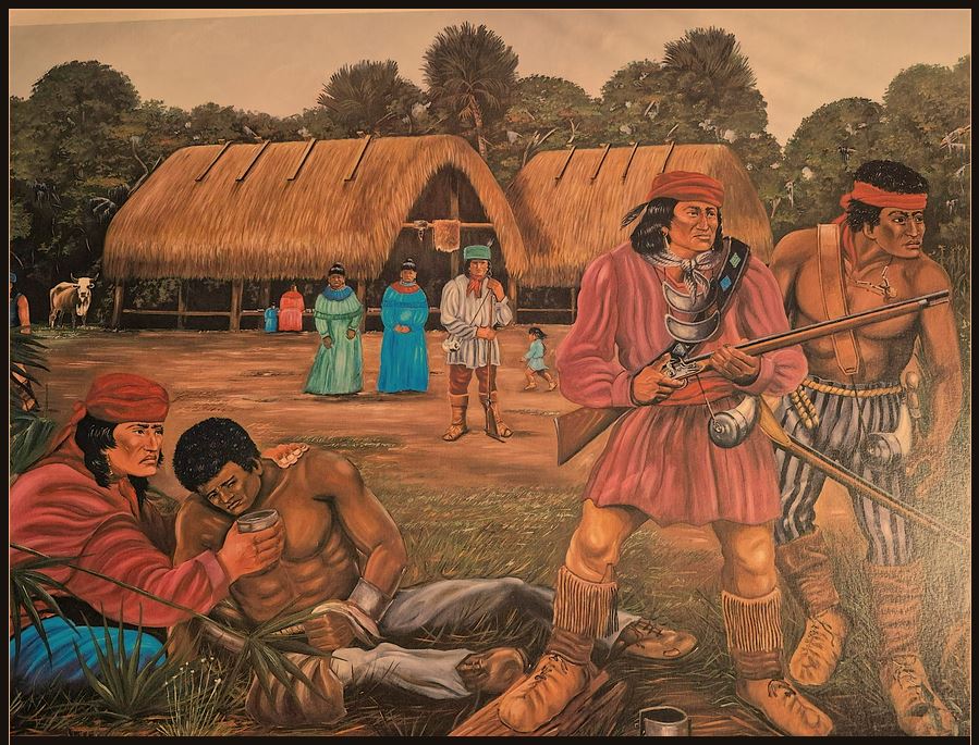 • Both the words “Seminoles” and “Maroons” are derived from the Spanish word “cimarrones,” which was used for livestock which escaped into the wild. “Cimarrones” became “Siminoli” in the Creek Indian language, and then “Seminole” in English.